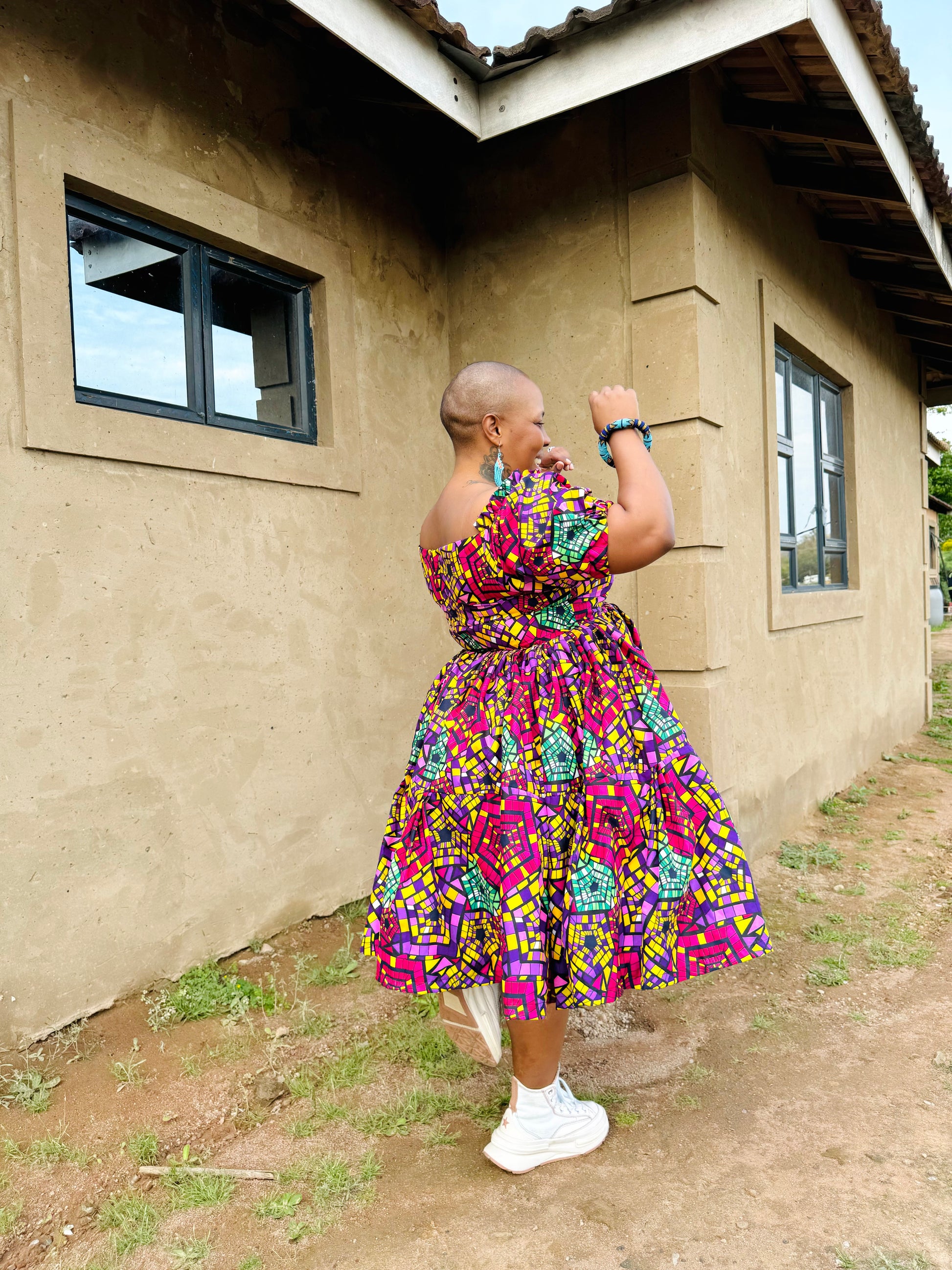 Slindile Dress is perfect for those who love to stand out with their style. The bright, bold colours add energy to any occasion, while the cotton fabric ensures comfort throughout the day.